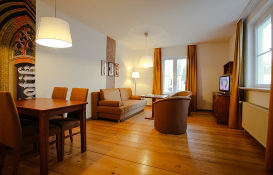 Details zum Angebot bei Beschreibung:Genießen Sie die himmlische Ruhe und die familiäre Atmosphäre im Markt Fuffzehn Aparthotel in Stralsund. Alle Apartments zeichnen sich durch modernes Interieur aus und sind mit einer geräumigen und komplett ausgestatteten Küchenzeile versehen. Wenn Sie das Fenster öffnen, um die frische Morgenluft zu genießen, schauen Sie direkt auf den Platz Alter Markt. Wir bieten Ihnen im Hotel Scheelehof (ca. 200 m vom Aparthotel entfernt) ein vielfältiges gastronomisches Angebot: das hanseatische Restaurant Zum Scheele, unsere Kaffeerösterei Kontor Scheele sowie die urige Kellerkneipe scheels. Genießen Sie ebenfalls ein paar schöne Momente in unseren gemütlichen Wellnessbereich.